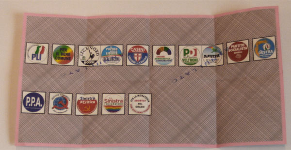 Con i nuovi sistemi di votazione, all’elettore verranno consegnate due schede (e non più tre, come avveniva col vecchio sistema) una sola scheda elettorale, di colore rosa, per la Camera ed una scheda, di colore giallo, per il Senato: in entrambe sono raffigurati i simboli delle liste in competizione, rispettivamente, nella circoscrizione o nella regione. I simboli delle liste appartenenti alla medesima coalizione appaiono riprodotti di seguito, in linea orizzontale uno accanto all'altro, su un'unica riga (modifiche apportate con artt. 1 e 2, primo comma, D.L. 8 marzo 2006, n.75).